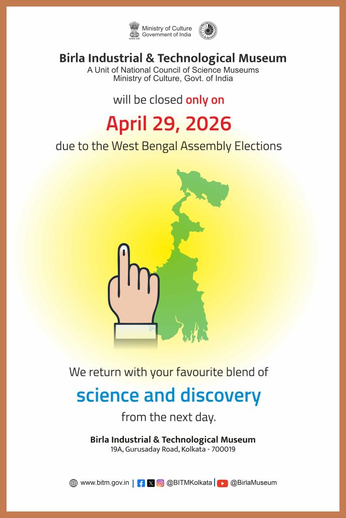 Birla Industrial & Technological Museum (BITM) in Kolkata, the first science museum in the country under the National Council of Science Museums (NCSM), Ministry of Culture, Govt. of India, is engaged in popularizing and promoting science especially among the youth through various interactive models, exhibitions, educational programmes and activities throughout the year.