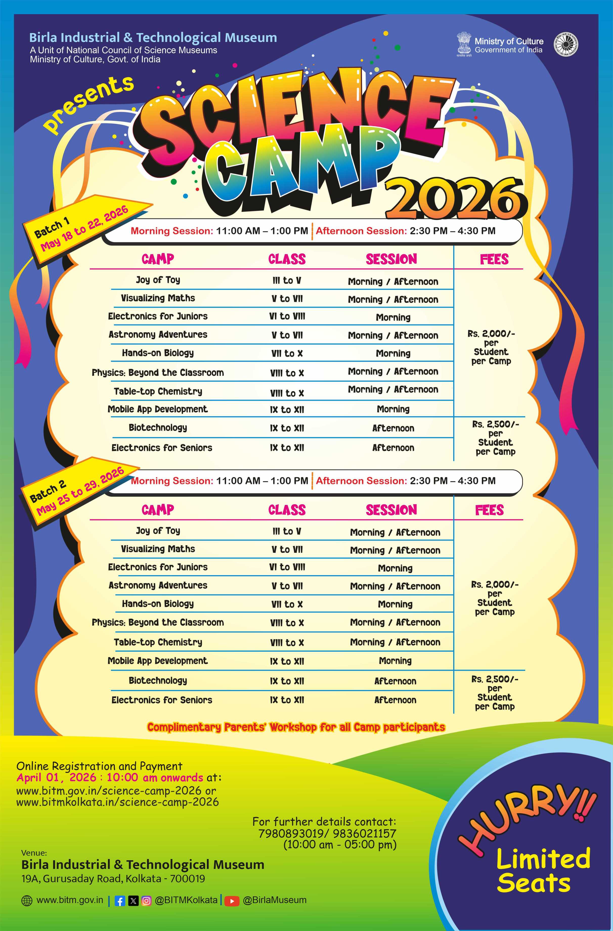 • Camp related queries may be clarified at  7980893019 / 9836021157 (10:00 am to 5:00 pm)
